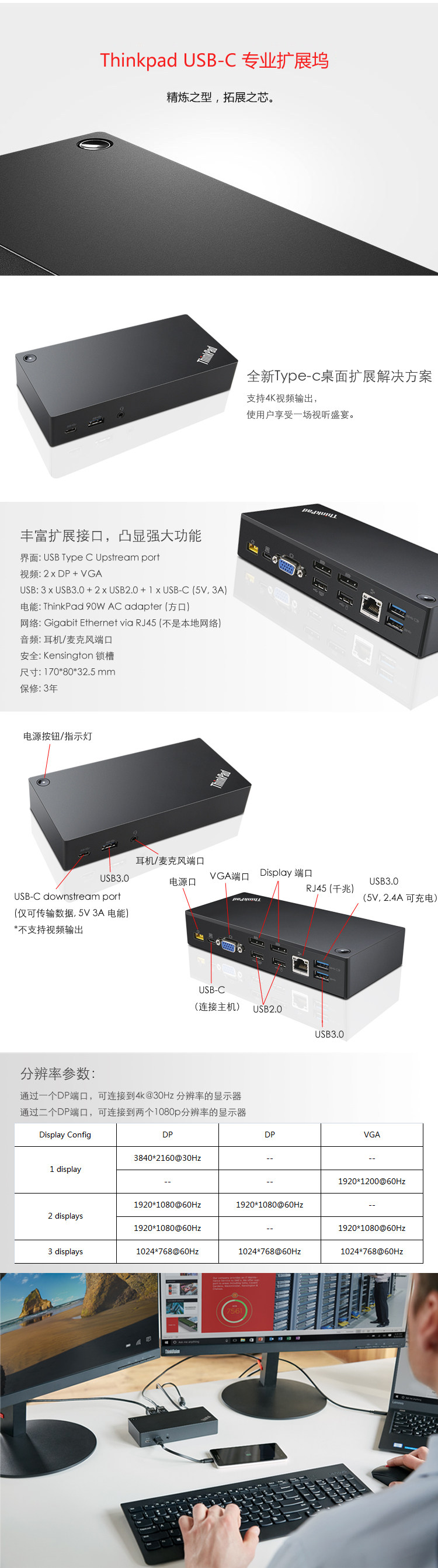 ThinkPad T470 T570 P51 TYPE-C USB-C扩展坞40A90090CN