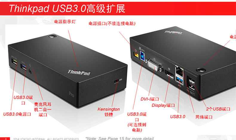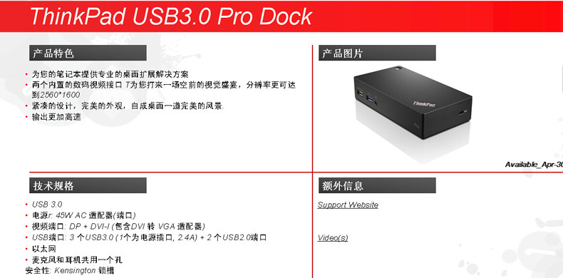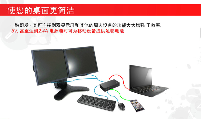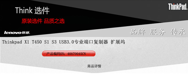 Thinkpad X1 T450 S1 S3 USB3.0专业端口复制器 扩展坞40A70045CN