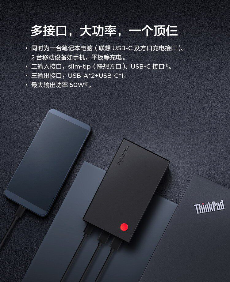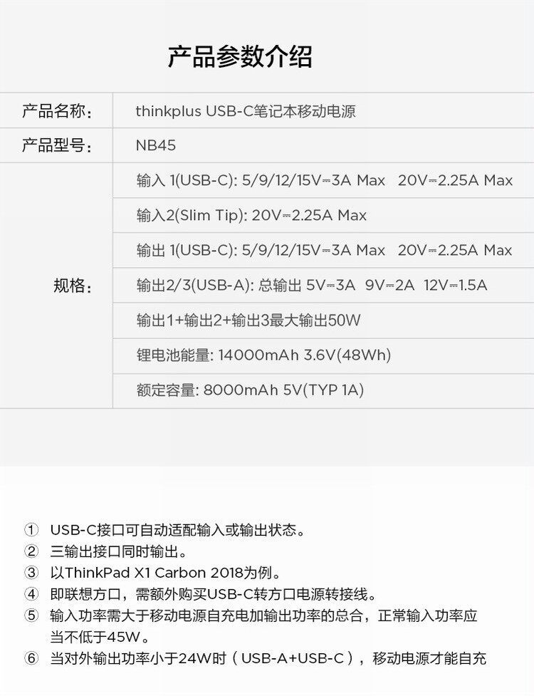 ThinkPad-thinkplus便携随身充50W 14000mAh笔记本移动电源NB45
