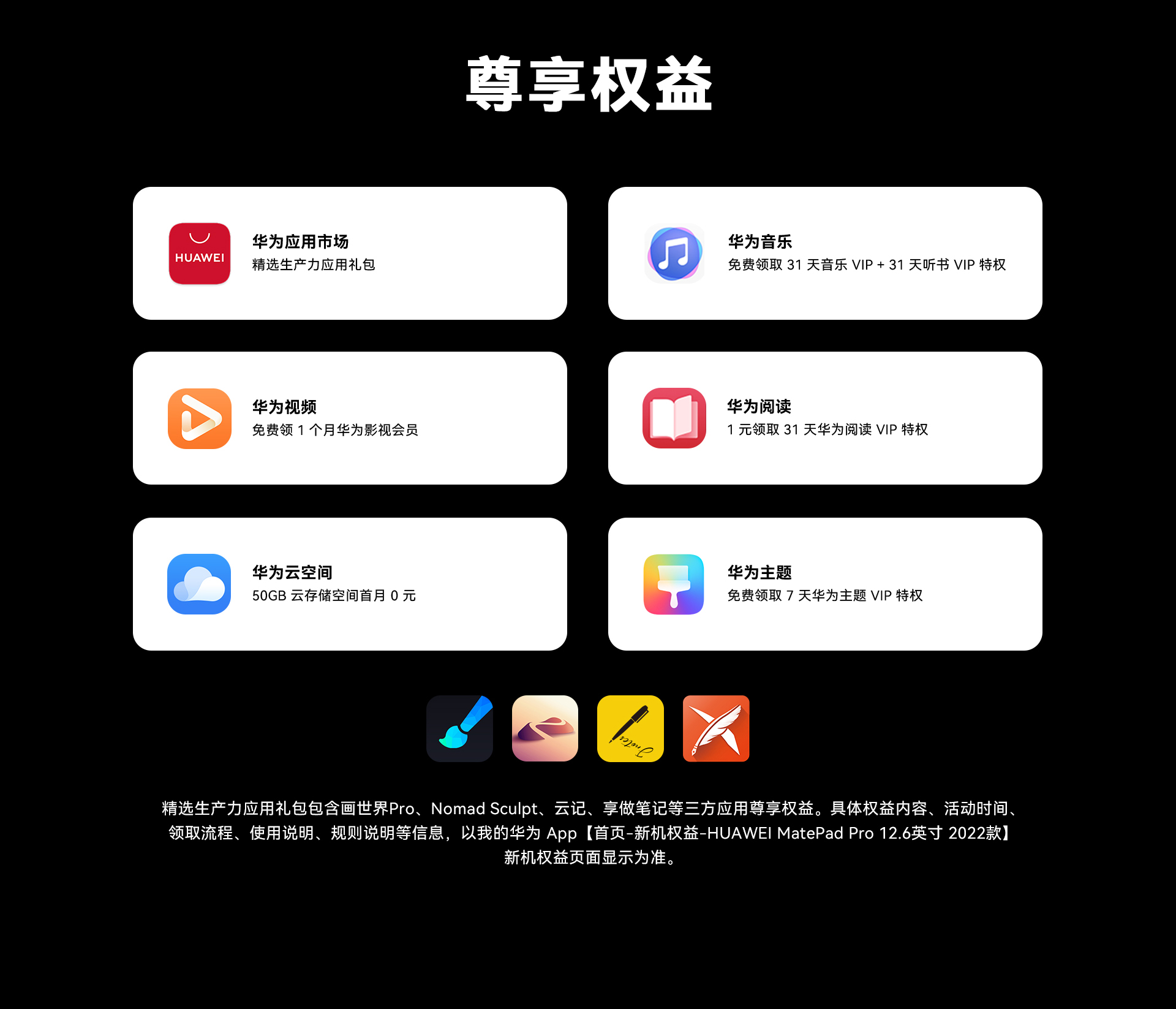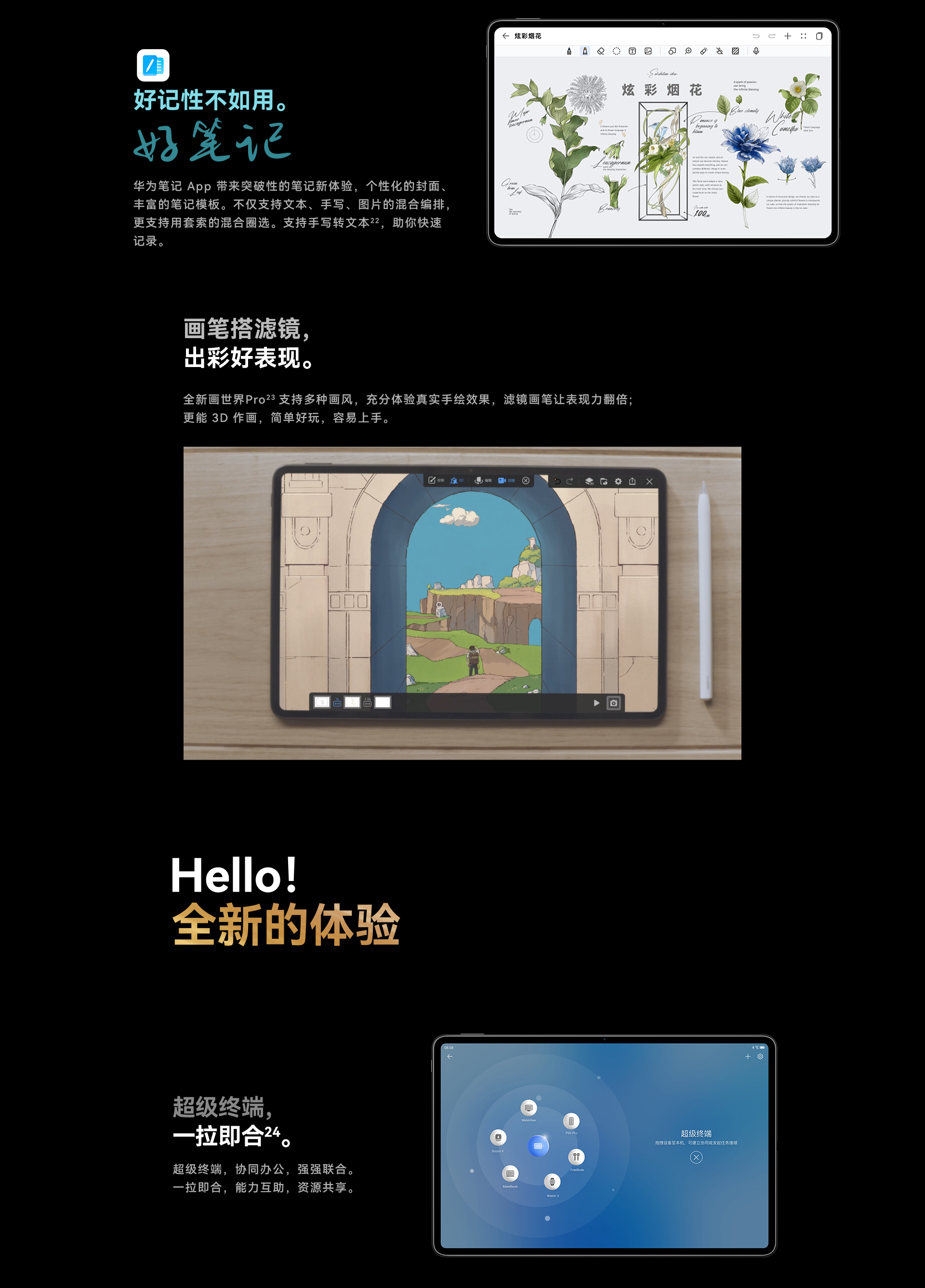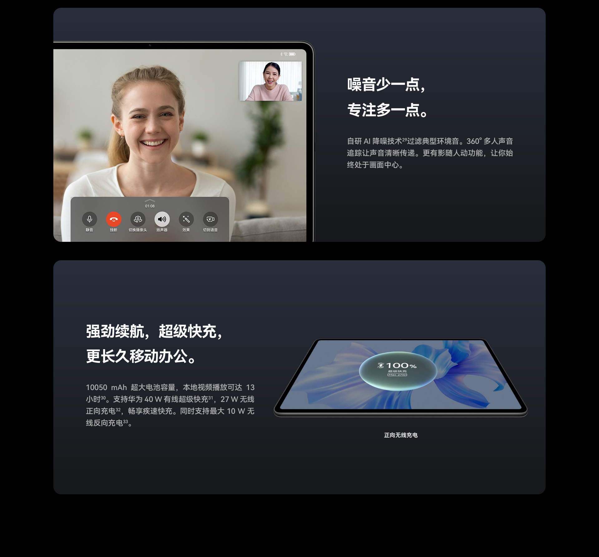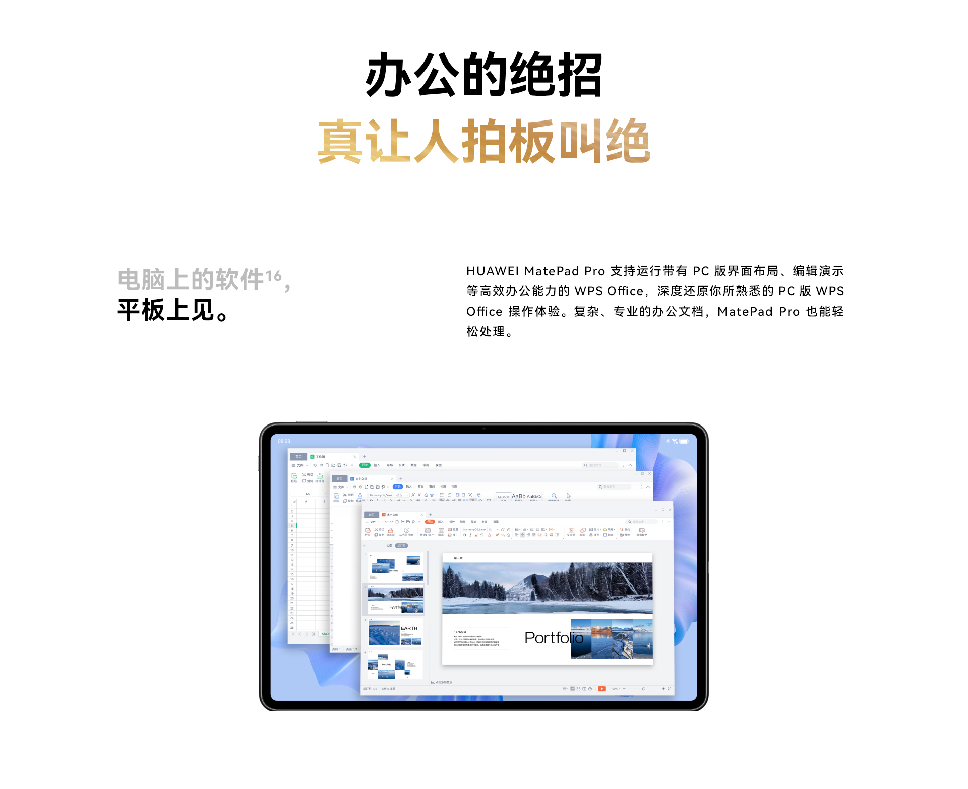 网络类型 WiFi版 型号 MatePad Pro 12.6 WIFI 8GB+256GB 处理器 麒麟9000E 版本 8G+256G 屏幕 12.6英寸 前置像头 800万像素(f/2.0光圈) 后置像头 1300万像素摄像头+ 800万像素广角+ 3D深感摄像头 电池 10050mAh